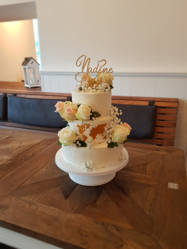 - Habt Ihr schon Deko-Ideen und könnt Ihr der Konditorei vielleicht sogar Bilder zur Anregung schicken? Interessant sind in dem Fall Entscheidungen, wie zum Beispiel: Naked Cake oder Fondant-Torte? Blumen, Beeren, Schokolade und/oder Karamell? Holzschriftzug als Cake Topper oder klassisches Brautpaar? …
